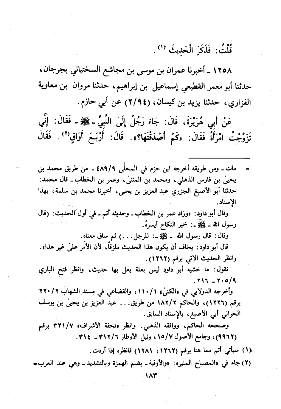 عَنْ أَبِي هُرَيْرَةَ، قَالَ: جَاءَ رَجُلٌ إِلَى النَّبِيِّ - صلى الله عليه وسلم - فَقَالَ: إنِّي تَزَوَّجْتُ امْرَأَةً فقَالَ: "كَمْ أَصْدَقْتَهَا؟ ". قَالَ: أَرْبَعَ أَوَاقٍ (¬2). فَقَالَ