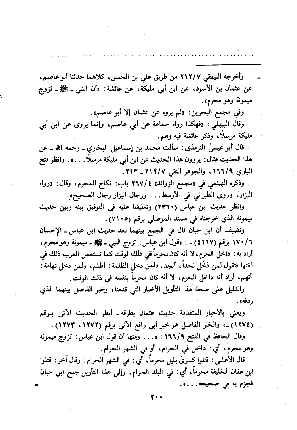 ونضيف أن ابن حبان قال في الجمع بينهما بعد حديث ابن عباس- الإحسان 6/ 170 برقم (4117) -:"قول ابن عباس: تزوج النبي-صلى الله عليه وسلم-ميمونة وهو محرم، أراد به: داخل الحرم، لا أنه كان محرماً في ذلك الوقت كما تستعمل العرب ذلك في لغتها فتقول لمن دَخَل نجداً، أنجد، ولمن دخل الظلمة: أظلم، ولمن دخل تهامة: أتهم، أراد أنه داخل الحرم، لا أنه كان محرماً بنفسه في ذلك الوقت.