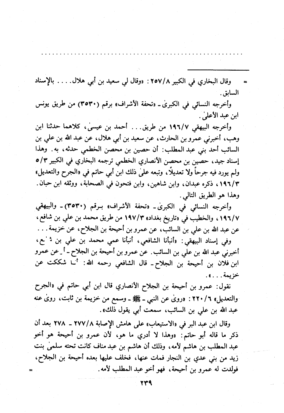 وقال ابن عبد البر في "الاستيعاب" على هامش الإصابة 8/ 277 - 278 بعد أن ذكر ما قاله أبو حاتم: "وهذا لا أدري ما هو، لأن عمرو بن أحيحة هو أخو عبد المطلب بن هاشم لأمه، وذلك أن هاشم بن عبد مناف كانت تحته سلمى قلت زيد من فى عدي بن النجار فمات عنها، فخلف عليها بعده أحيحة بن الجلاح، فولدت له عمرو بن أحيحة، فهو أخو عبد المطلب لأمه. =