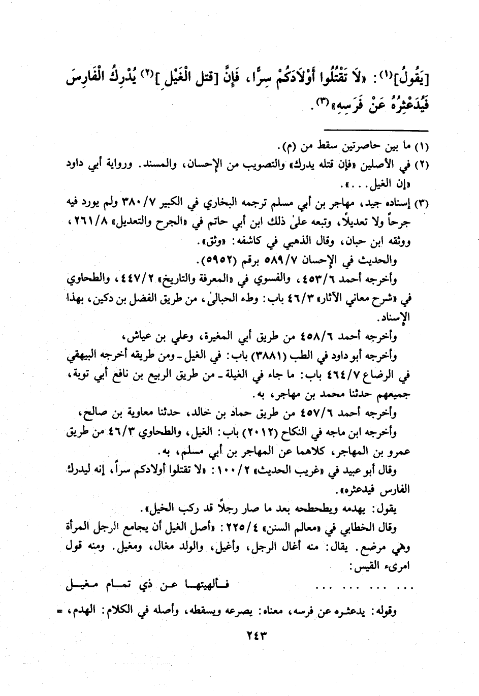 (¬2) في الأصلين "فإن قتله يدرك" والتصويب من الإحسان، والمسند. ورواية أبي داود "إن الغيل ... ".