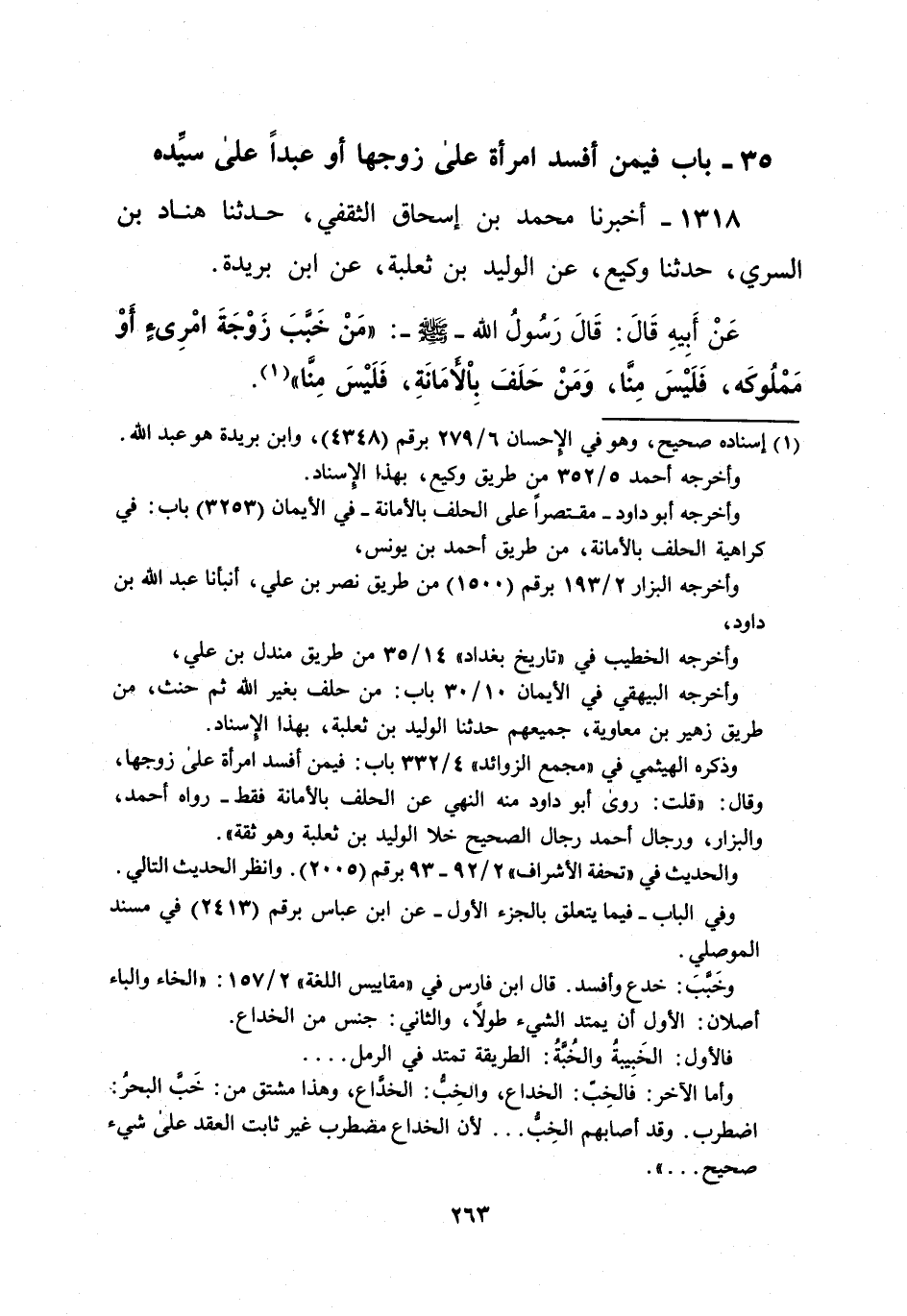 35 - باب فيمن أفسد امرأة على زوجها أو عبداً على سيِّده