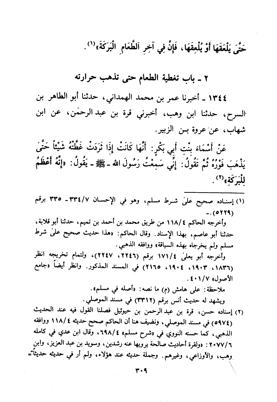 2 - باب تغطية الطعام حتى تذهب حرارته