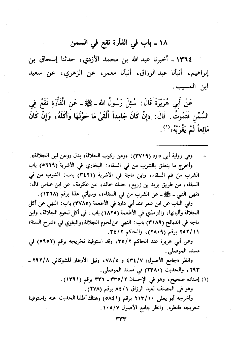 1364 - أخبرنا عبد الله بن محمد الأزدي، حدثنا إسحاق بن إبراهيم، أنبأنا عبد الرزاق، أنبأنا معمر، عن الزهري، عن سعيد ابن المسيب.