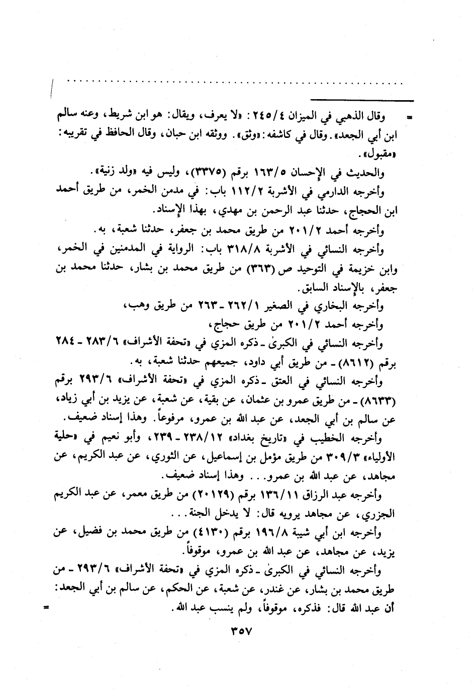 = وقال الذهبي في الميزان 4/ 245: "لا يعرف، ويقال: هو ابن شريط، وعنه سالم ابن أبي الجعد". وقال في كاشفه: "وثق". ووثقه ابن حبان، وقال الحافظ في تقريبه: "مقبول".