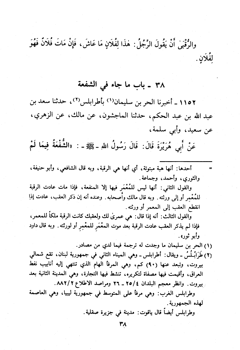 1152 - أخبرنا الحر بن سليمان (¬1) بأطرابلس (¬2)، حدثنا سعد بن عبد الله بن عبد الحكم، حدثنا الماجشون، عن مالك، عن الزهري، عن سعيد، وأبي سلمة،