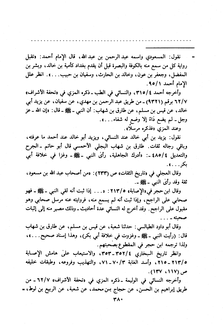 = نقول: المسعودي واسمه عبد الرحمن بن عبد الله، قال الإمام أحمد: "تقبل رواية كل من سمع منه بالكوفة والبصرة قبل أن يقدم بغداد كأمية بن خالد، وبشر بن المفضل، وجعفر بن عون، وخالد بن الحارث، وسفيان بن حبيب ... ". انظر علل الإمام أحمد 1/ 95.
