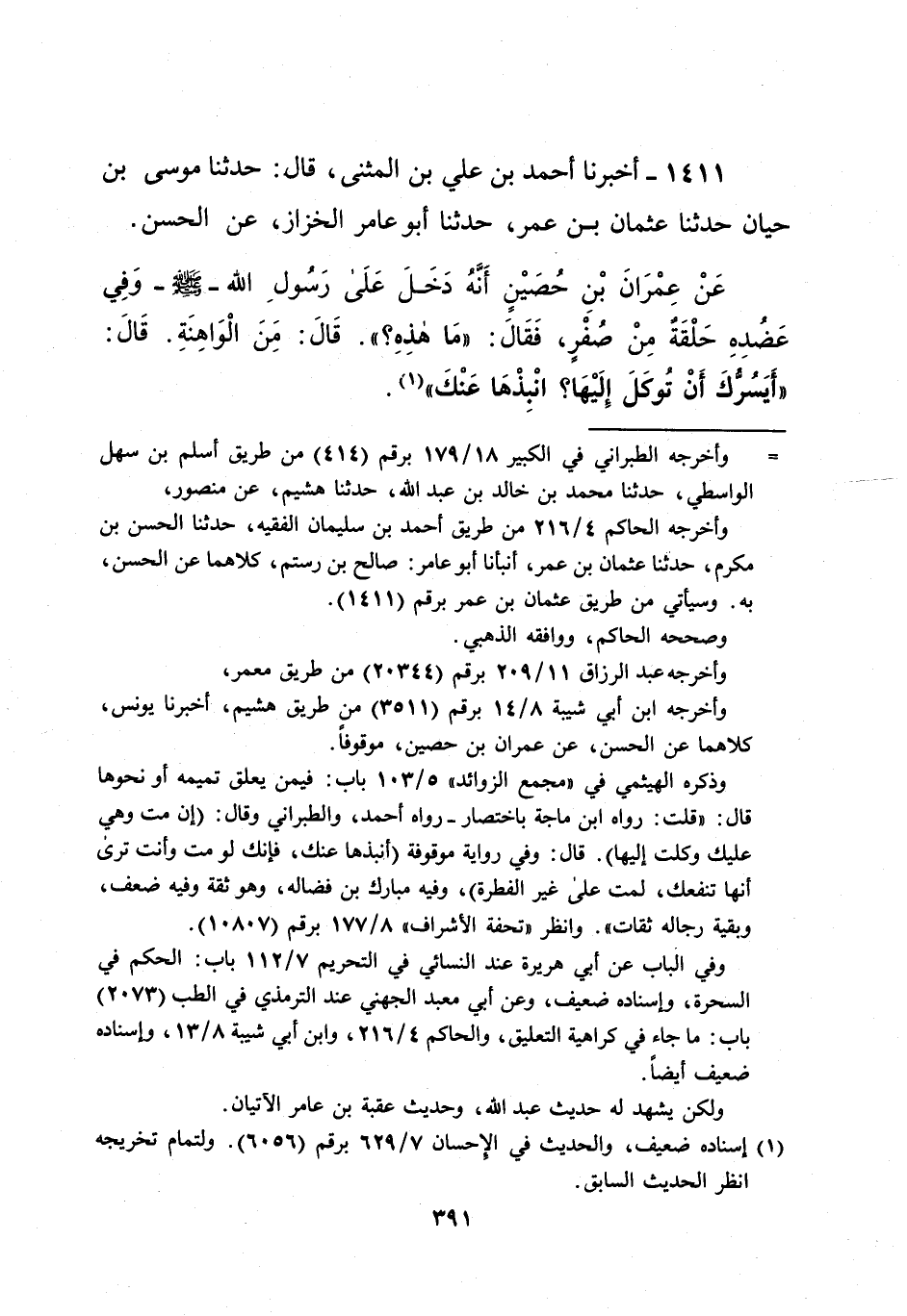 1411 - أخبرنا أحمد بن علي بن المثنى، قال: حدثنا موسى بن حيان حدثنا عثمان بن عمر، حدثنا أبوعامر الخزاز، عن الحسن.
