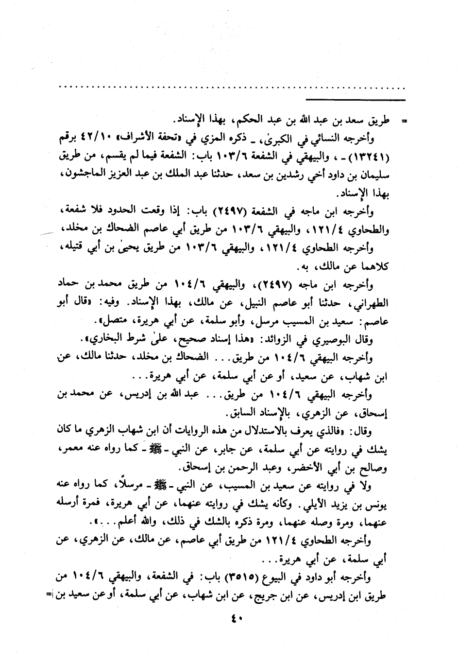 وأخرجه أبو داود في البيوع (3515) باب: في الشفعة، والبيهقي 6/ 104 من طريق ابن إدريس، عن ابن جريج، عن ابن شهاب، عن أبي سلمة، أو عن سعيد بن =