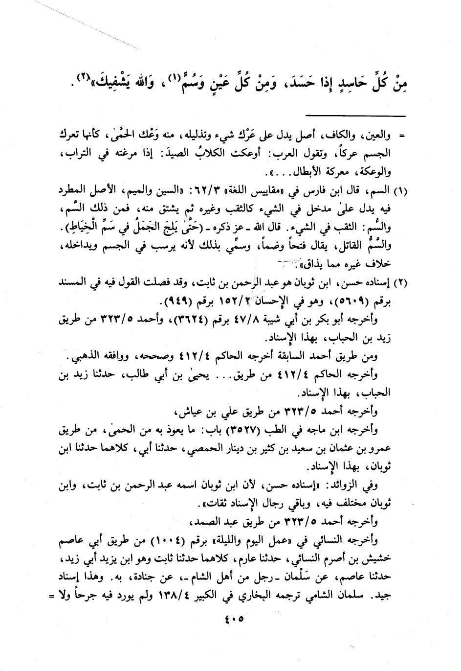 مِنْ كُلِّ حَاسِدٍ إِذا حَسَدَ، وَمِنْ كُلِّ عَيْنٍ وَسُمٍّ (¬1)، وَالله يَشْفِيكَ (¬2).