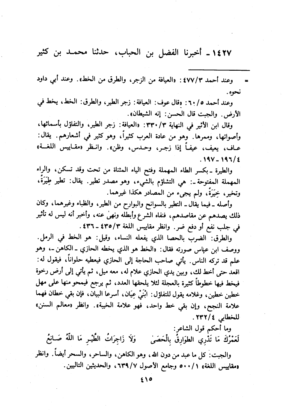 1427 - أخبرنا الفضل بن الحباب، حدثنا محمد بن كثير