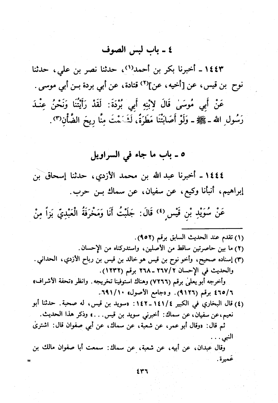 (¬4) قال البخاري في الكبير 4/ 141 - 142: "سويد بن قيس، له صحبة حدثنا أبو نعيم، عن سفيان، عن سماك: أخبرني سويد بن قيس ... " وذكر هذا الحديث. ثم قال: "وقال أبو عمر، عن شعبة، عن سماك، عن أبي صفوان قال: اشترى النبي ...