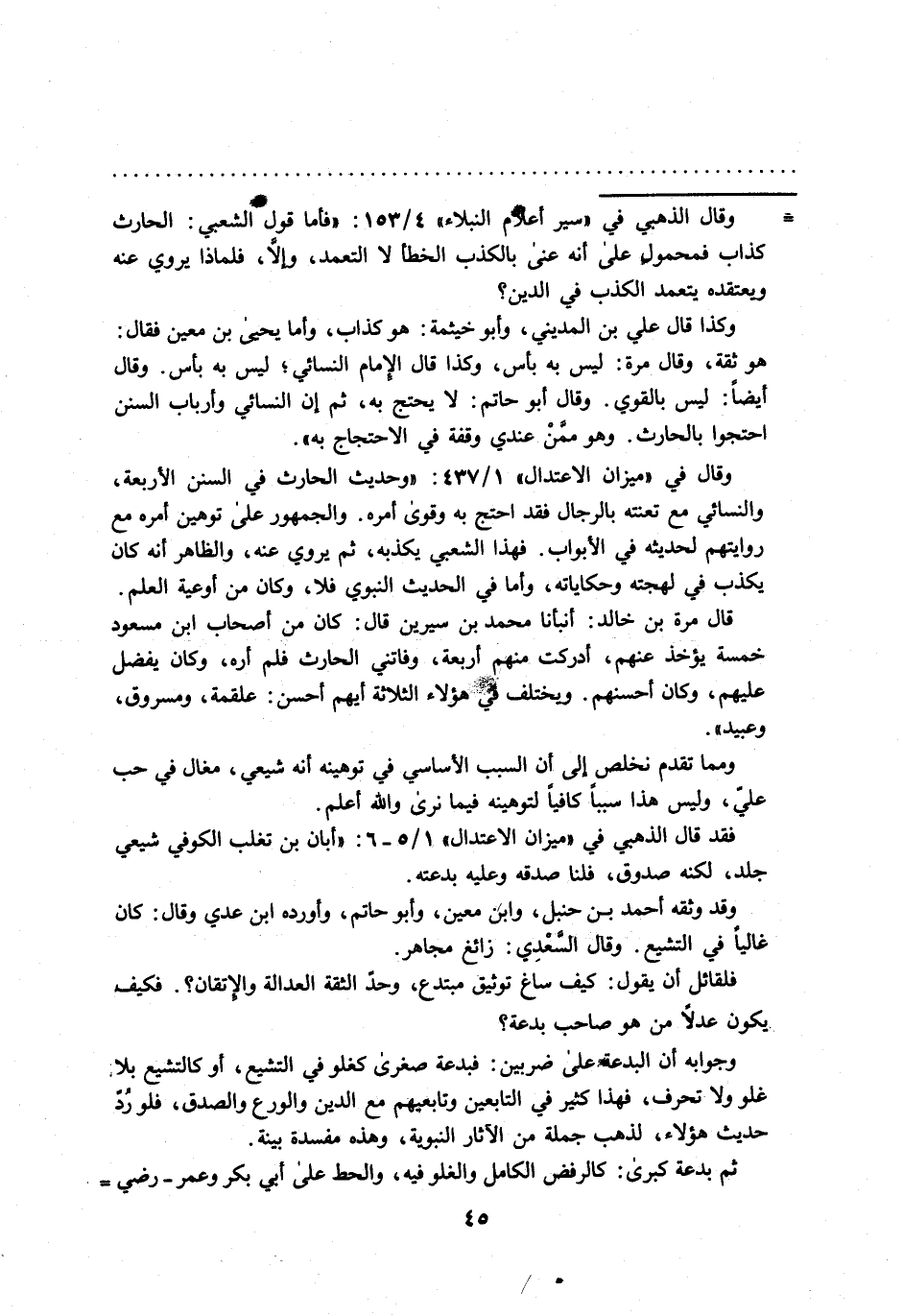 = وقال الذهبي في "سير أعلام النبلاء" 153/ 4: "فاما قول الشعبي: الحارث كذاب فمحمول على أنه عني بالكذب الخطأ لا التعمد، والاَّ، فلماذا يروي عنه ويعتقده يتعمد الكذب في الدين؟