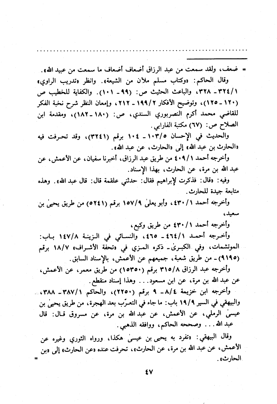 الأعمش، عن عبد الله بن مرة، عن الحارث"، تحرفت عنده "عن الحارث" إلى "بن