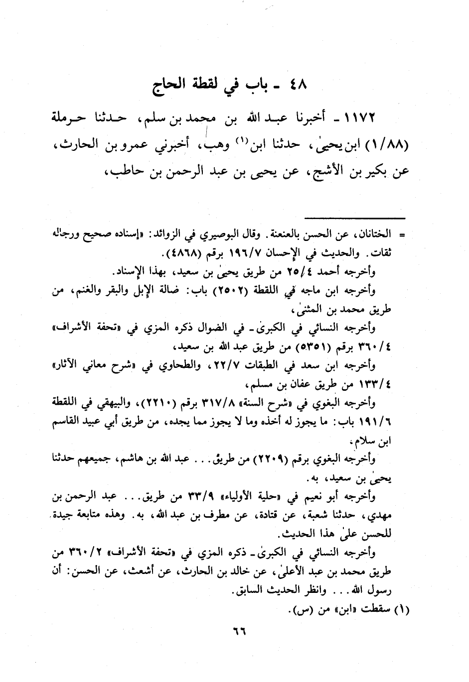 1172 - أخبرنا عبد الله بن محمد بن سلم، حدثنا حرملة (88/ 1) ابن يحيى، حدثنا ابن (¬1) وهب، أخبرني عمرو بن الحارث، عن بكير بن الأشج، عن يحيى بن عبد الرحمن بن حاطب،