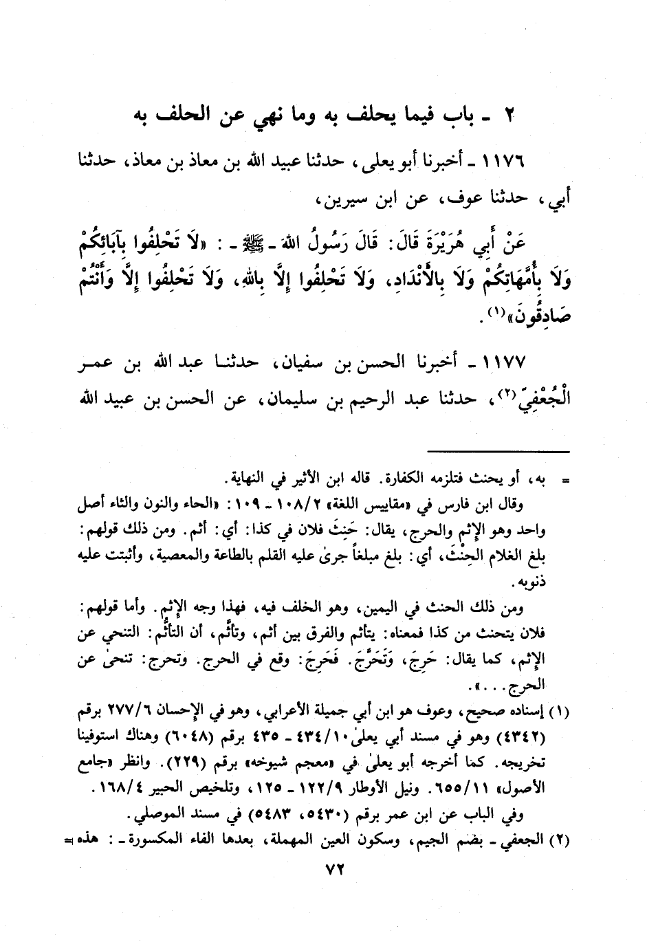 1176 - أخبرنا أبو يعلى، حدثنا عبيد الله بن معاذ بن معاذ، حدثنا أبي، حدثنا عوف، عن ابن سيرين،