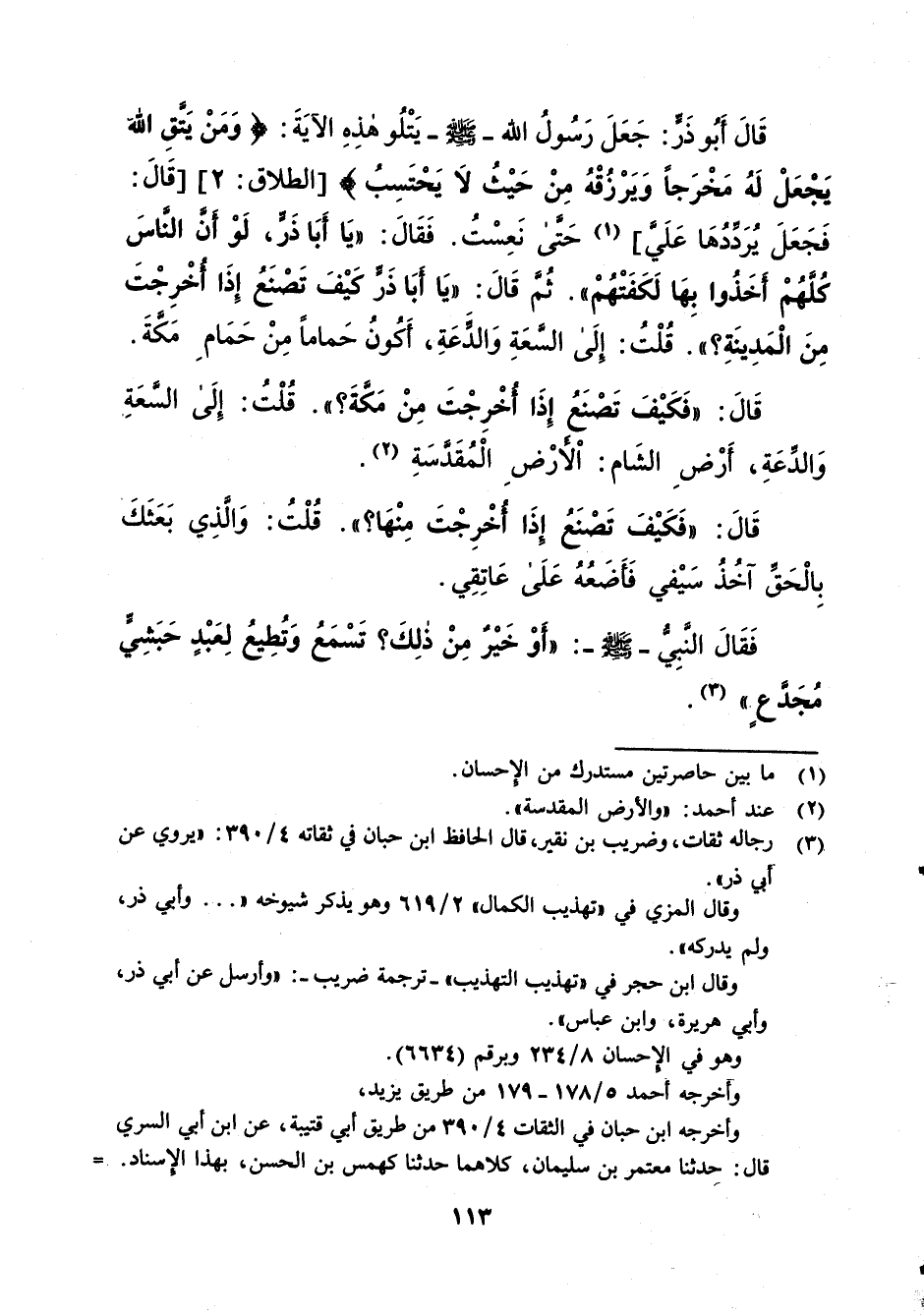 (¬3) رجاله ثقات، وضريب بن نقير، قال الحافظ ابن حبان في ثقاته 4/ 390: "يروي عن أبى ذر". وقال المزي في "تهذيب الكمال" 2/ 619 وهو يذكر شيوخه " ... وأبي ذر، ولم يدركه".