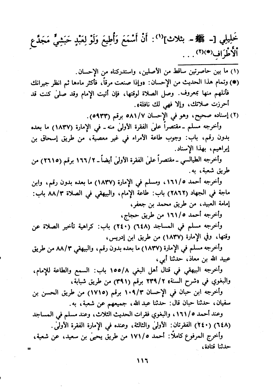 خَلِيلِي [-صلى الله عليه وسلم -بثلاث] (¬1): أَنْ أَسْمَعَ وَأُطِيعَ وَلَوْ لِعَبْدٍ حَبَشِيٍّ مَجَدَّعِ