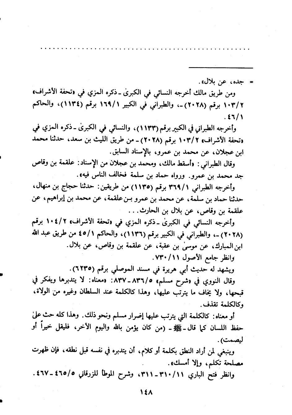 وأخرجه النسائي في الكبرى- ذكره المزي في "تحفة الأشراف" 2/ 104 برقم (2028) -، والطبراني في الكبير برقم (1136)، والحاكم 1/ 45 من طريق عبد الله ابن المبارك، عن موسى بن عقبة، عن علقمة بن وقاص، عن بلال. وانظر جامع الأصول11/ 730.