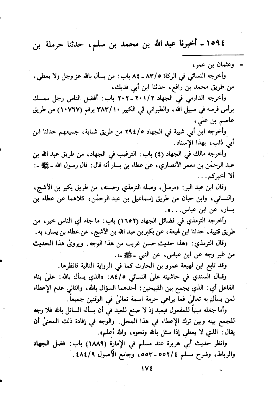 1594 - أخبرنا عبد الله بن محمد بن سلم، حدثنا حرملة بن