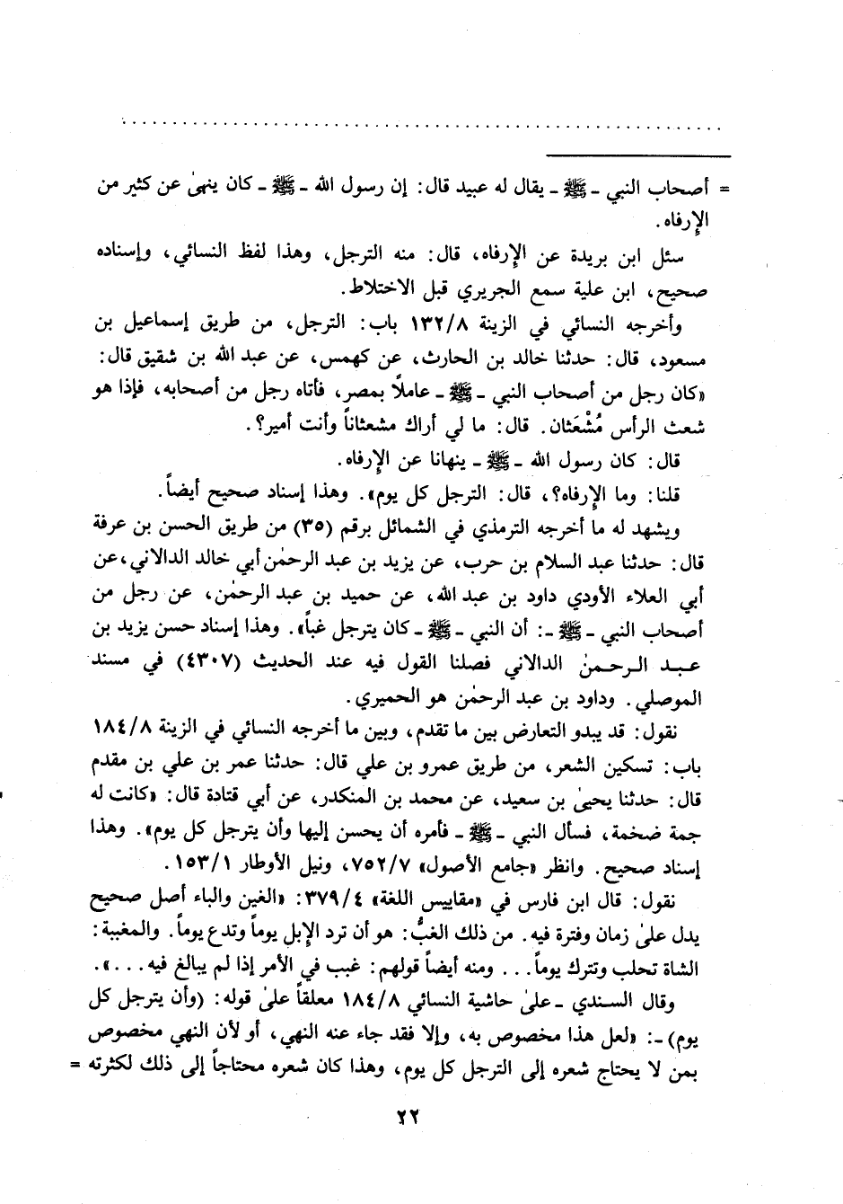 سئل ابن بريدة عن الإرفاه، قال: منه الترجل، وهذا لفظ النسائي، وإسناده صحيح، ابن علية سمع الجريري قبل الاختلاط.