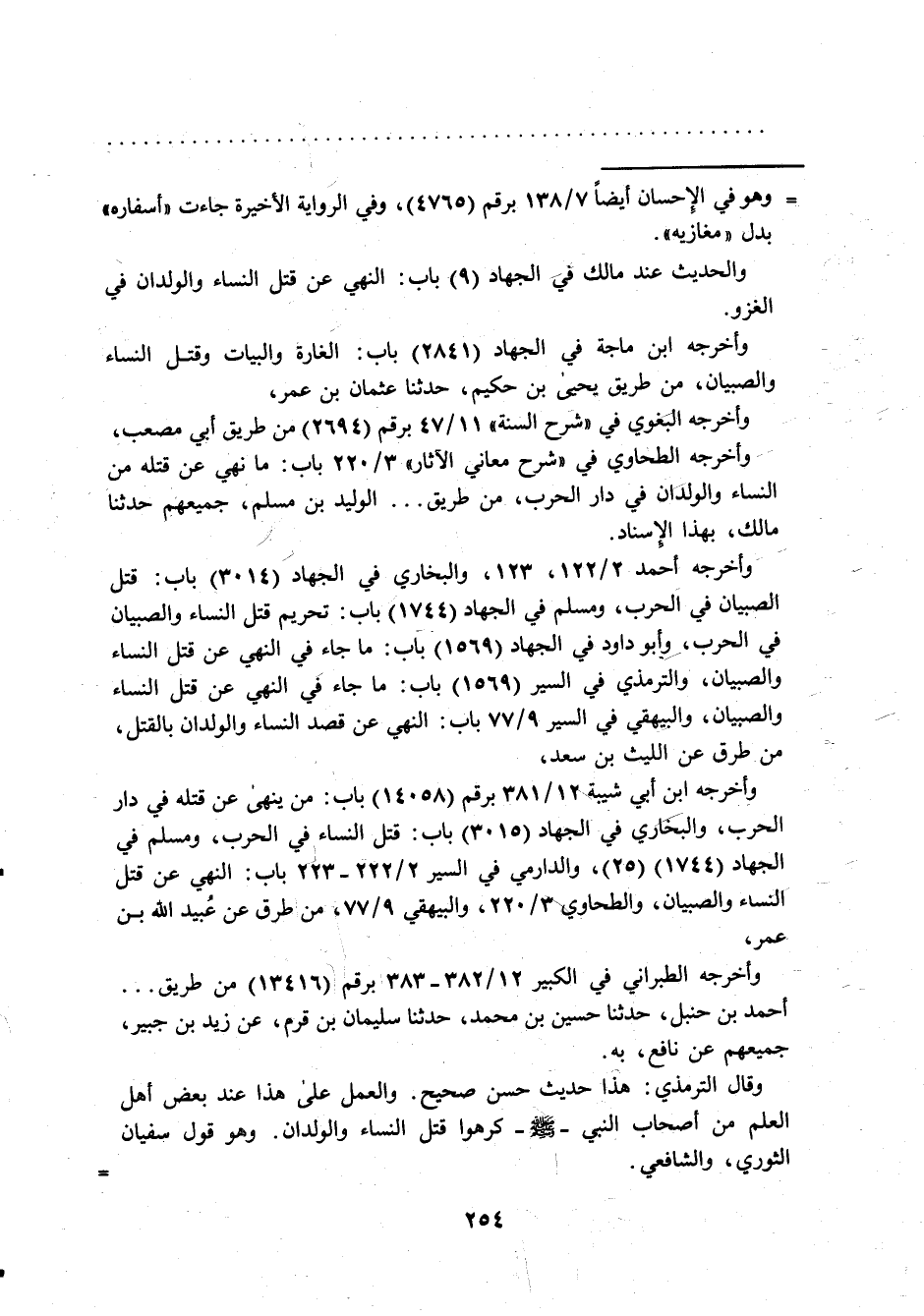 وقال الترمذي: هذا حديث حسن صحيح. والعمل على هذا عند بعض أهل العلم من أصحاب النبي-صلى الله عليه وسلم- كرهوا قتل النساء والولدان. وهو قول سفيان الثوري، والشافعي. =