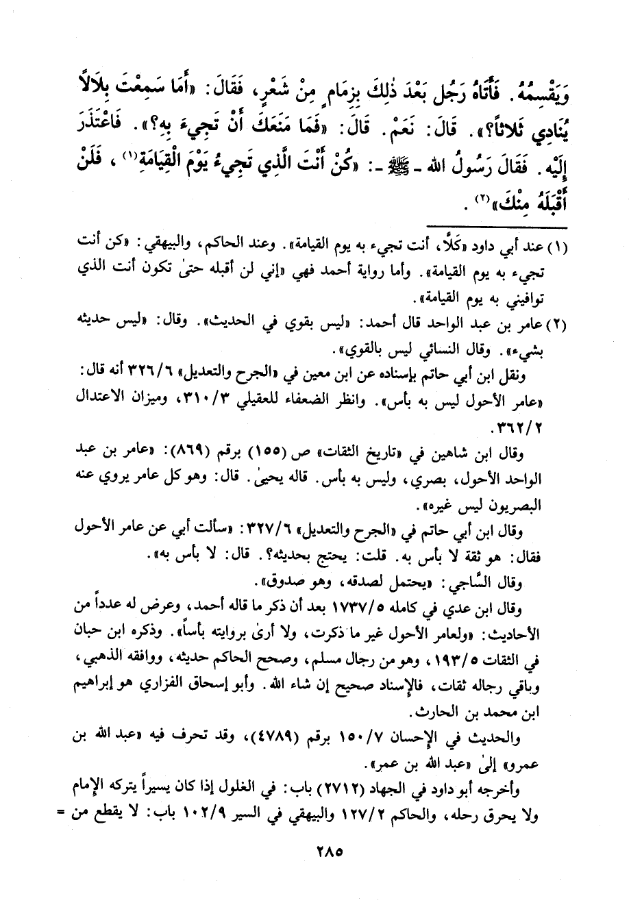 (¬2) عامر بن عبد الواحد قال أحمد: "ليس بقوي في الحديث". وقال: "ليس حديثه بشيء". وقال النسائي ليس بالقوي".