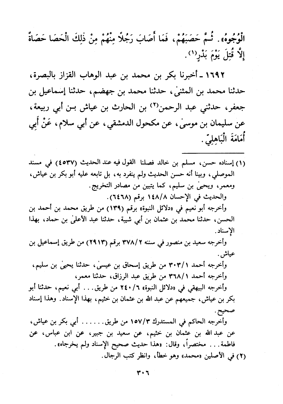 1692 - أخبرنا بكر بن محمد بن عبد الوهاب القزاز بالبصرة، حدثنا محمد بن المثنى، حدثنا محمد بن جهضم، حدثنا إسماعيل بن جعفر، حدثني عبد الرحمن (¬2) بن الحارث بن عياش بن أبي ربيعة، عن سليمان بن موسى، عن مكحول الدمشقي، عن أبي سلام، عَنْ أَبِي أُمَامَةَ الْبَاهِلِيّ.