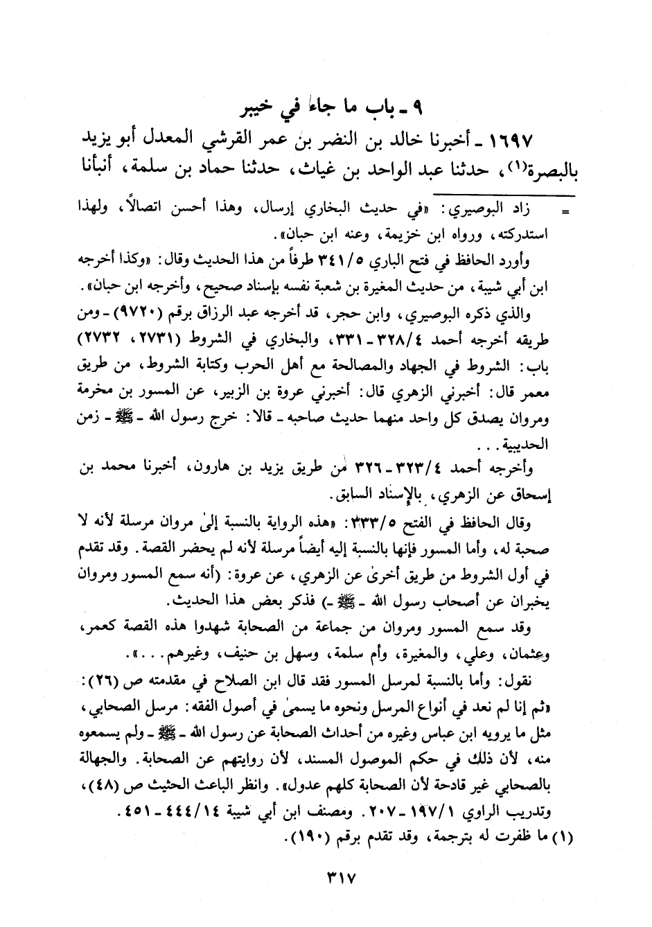 وقد سمع المسور ومروان من جماعة من الصحابة شهدوا هذه القصة كعمر، وعَثمان، وعلي، والمغيرة، وأم سلمة، وسهل بن حنيف، وغيرهم ... ".