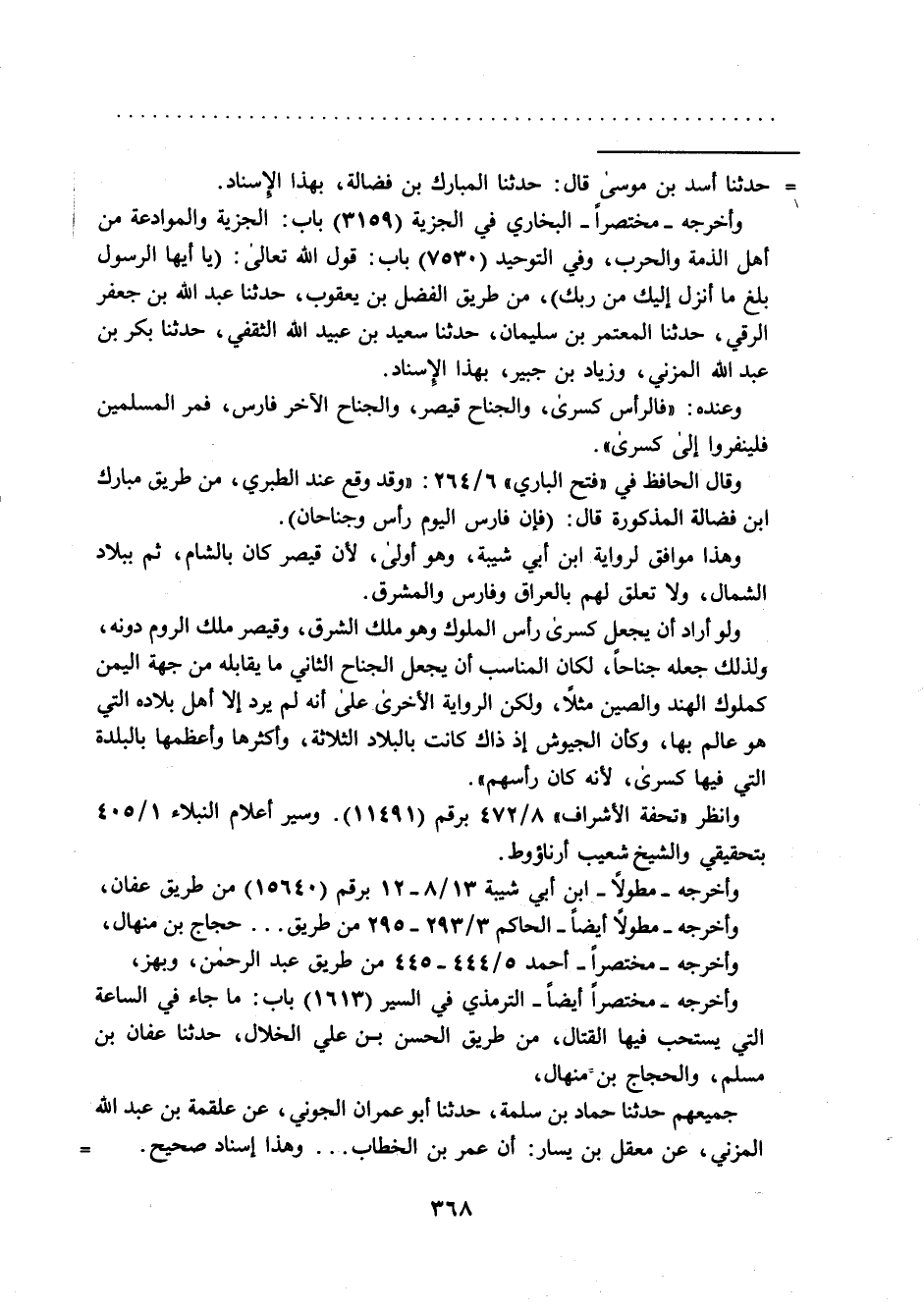 = حدثنا أسد بن موسى قال: حدثنا المبارك بن فضالة، بهذا الإسناد. وأخرجه -مختصراً- البخاري في الجزية (3159) باب: الجزية والموادعة من أهل الذمة والحرب، وفي التوحيد (7530) باب: قول الله تعالى: (يا أيها الرسول بلغ ما أنزل إليك من ربك)، من طريق الفضل بن يعقوب، حدثنا عبد الله بن جعفر الرقي، حدثنا المعتمر بن سليمان، حدثنا سعيد بن عبيد الله الثقفي، حدثنا بكر بن عبد الله المزني، وزياد بن جبير، بهذا الإِسناد.