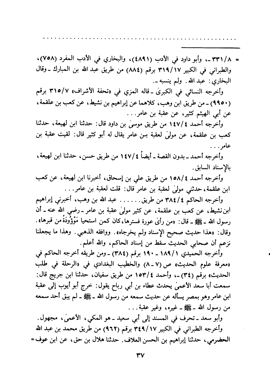 وأخرجه أحمد 4/ 147 من طريق موسى بن داود قال: حدثنا ابن لهيعة، حدثنا كعب بن علقمة، عن مولى لعقبة بن عامر يقال له أبو كثير قال: لقيت عقبة بن عامر ... وأخرجه أحمد- بدون القصة- أيضاً 4/ 147 من طريق حسن، حدثنا ابن لهيعة، بالإِسناد السابق.