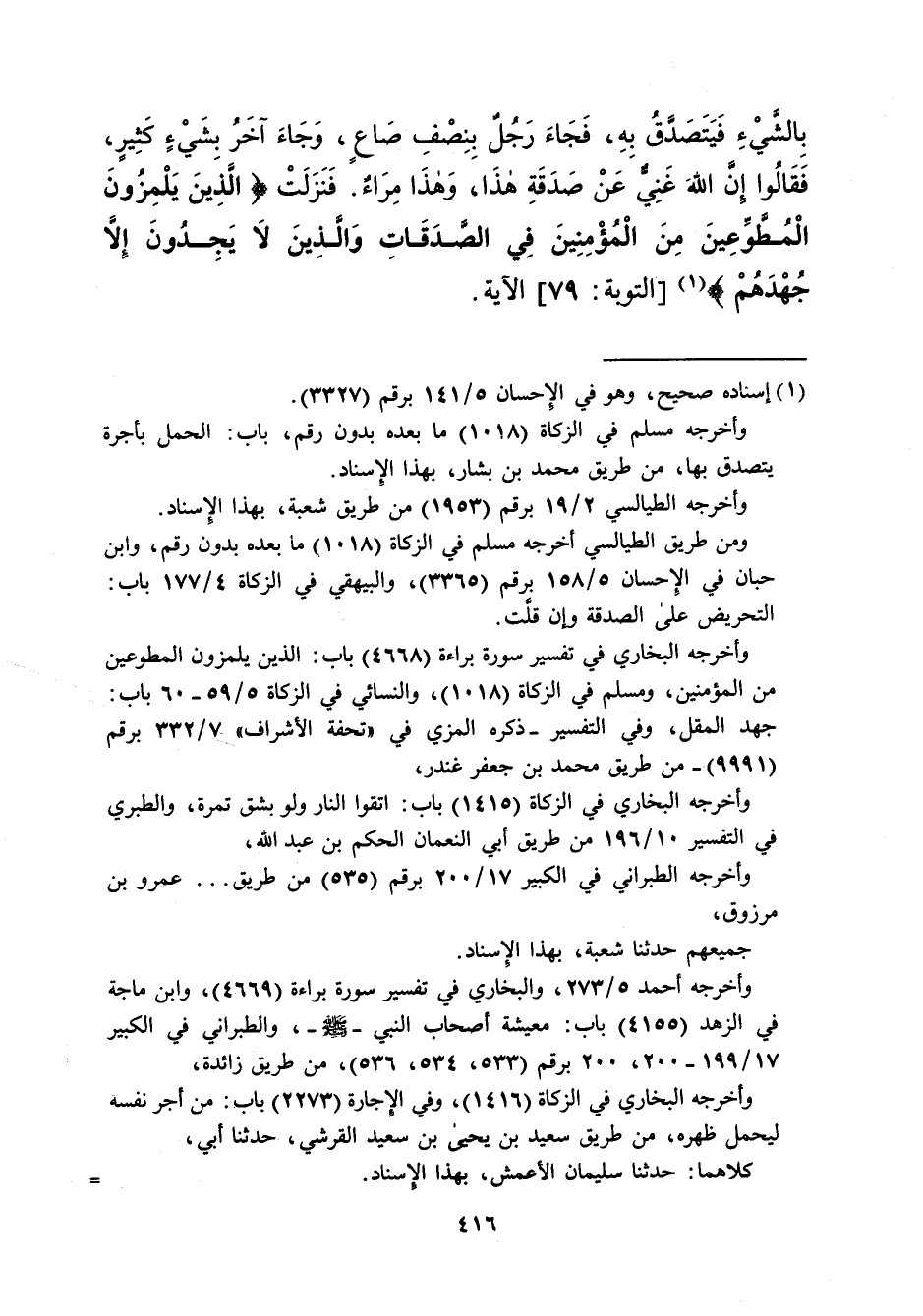 وأخرجه أحمد 5/ 273، والبخاري في تفسير سورة براءة (4669)، وابن ماجة في الزهد (4155) باب: معيشة أصحاب النبي -صلى الله عليه وسلم-، والطبراني في الكبير 17/ 199 - 200،200 برقم (533، 534، 536)، من طريق زائدة، وأخرجه البخاري في الزكاة (1416)، وفي الإجارة (2273) باب: من أجر نفسه ليحمل ظهره، من طريق سعيد بن يحيى بن سعيد القرشي، حدثنا أبى، كلاهما: حدثنا سليمان الأعمش، بهذا الإسناد. =