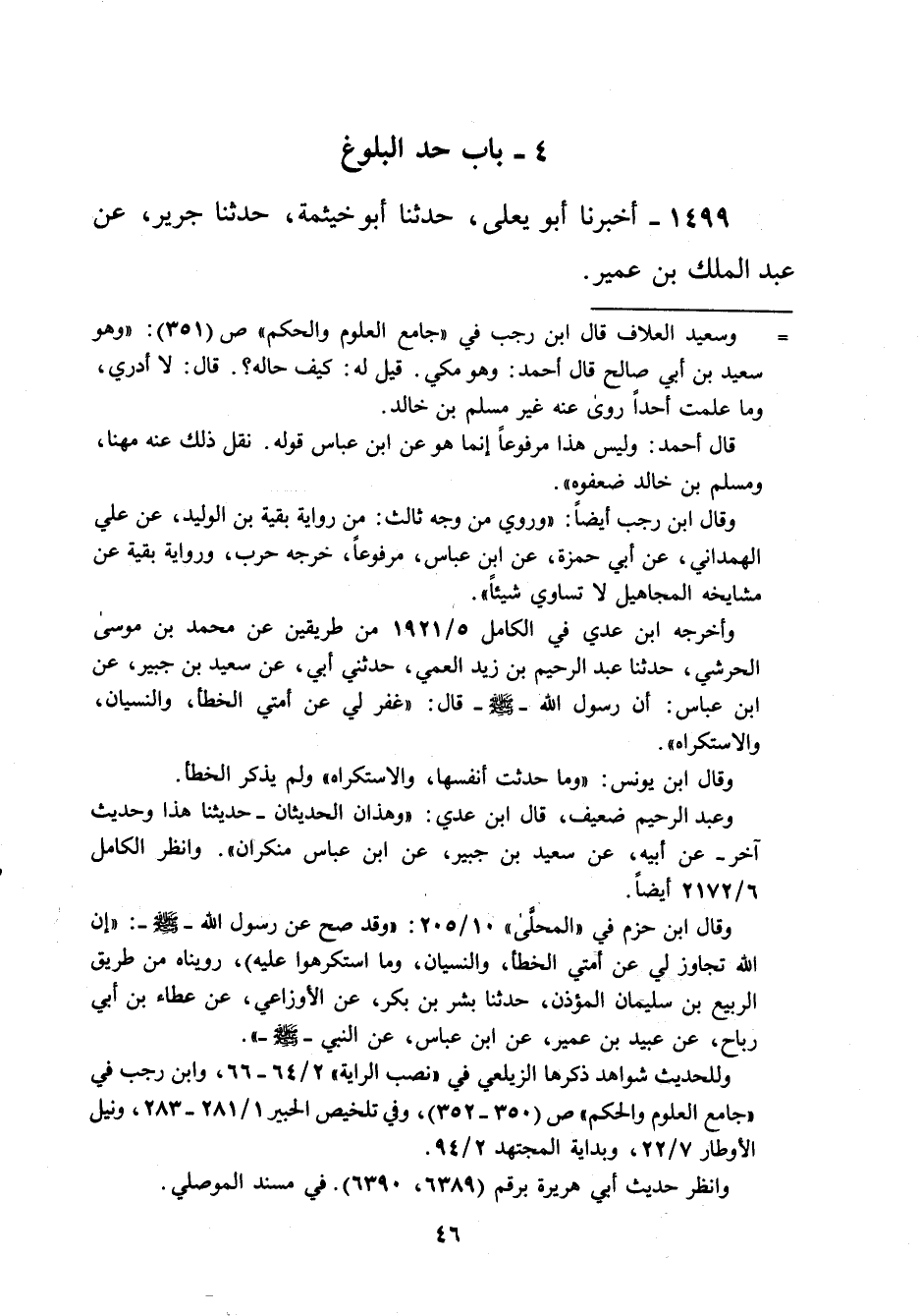 "جامع العلوم والحكم" ص (350 - 352)، وفي تلخيص الحبير 1/ 281 - 283، ونيل