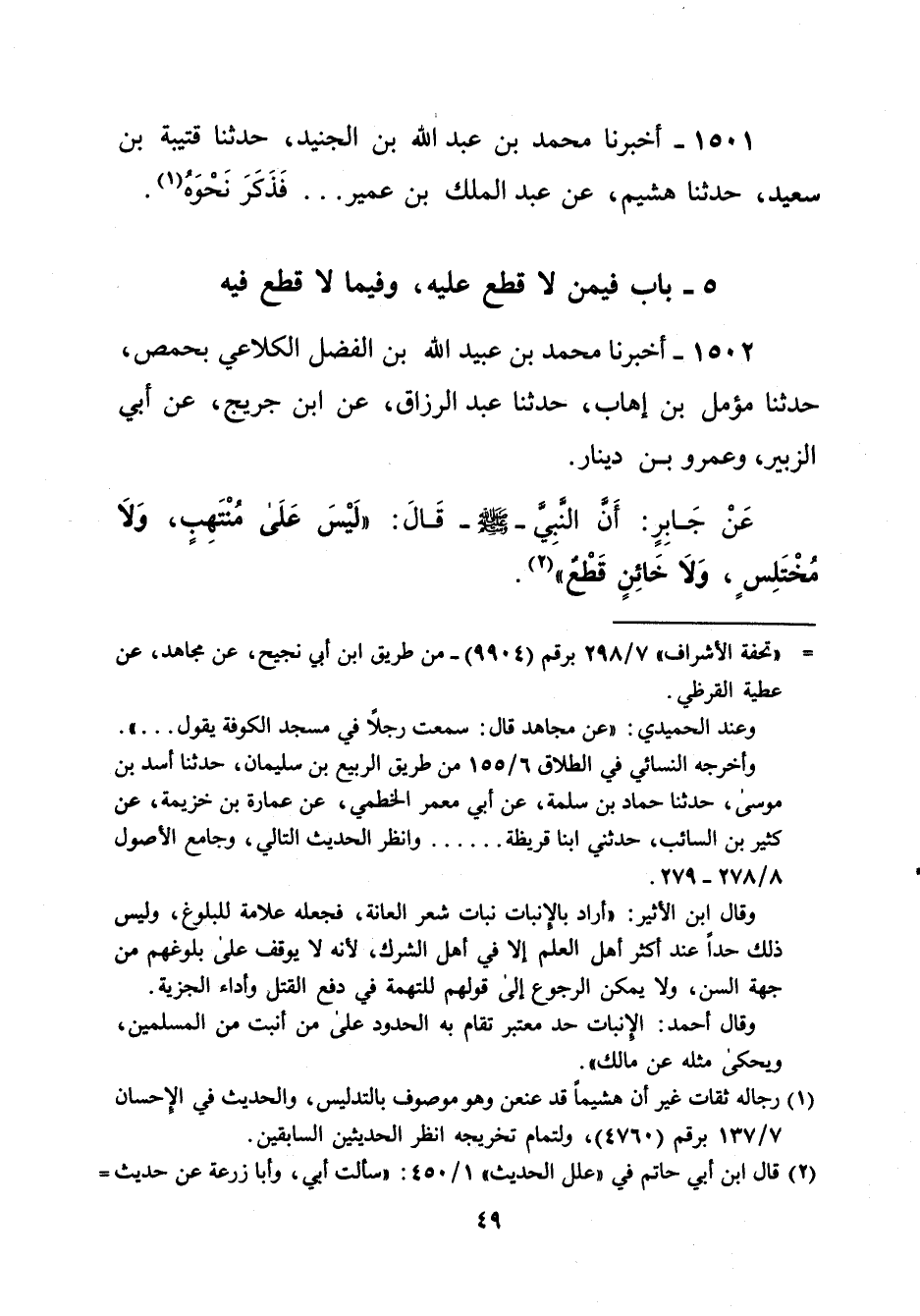 1501 - أخبرنا محمد بن عبد الله بن الجنيد، حدثنا قتيبة بن سعيد، حدثنا هشيم، عن عبد الملك بن عمير ... فَذَكَرَ نَحْوَهُ (¬1).