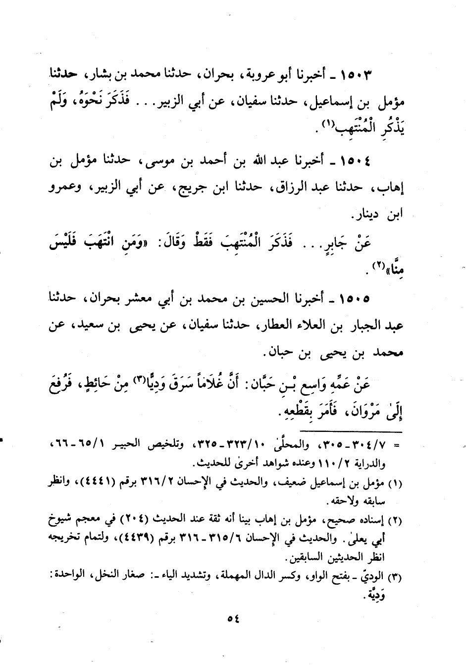 1503 - أخبرنا أبو عروبة، بحران، حدثنا محمد بن بشار، حدثنا مؤمل بن إسماعيل، حدثنا سفيان، عن أبي الزبير ... فَذَكَرَ نَحْوَهُ، وَلَمْ يَذْكُرِ الْمُنْتَهِب (¬1).