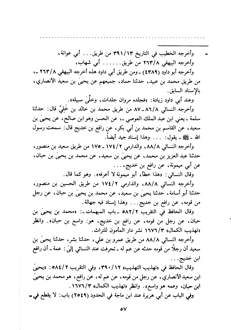 = وأخرجه الخطيب في التاريخ 13/ 391 من طريق ... أبي عوانة، وأخرجه البيهقي 8/ 263 من طريق ...... أبي شهاب، وأخرجه أبو داود (4389) - ومن طريق أبي داود هذه أخرجه البيهقي 8/ 263 - ، من طريق محمد بن عبيد، حدثنا حماد، جميعهم عن يحيى بن سعيد الأنصاري، بالإسناد السابق.