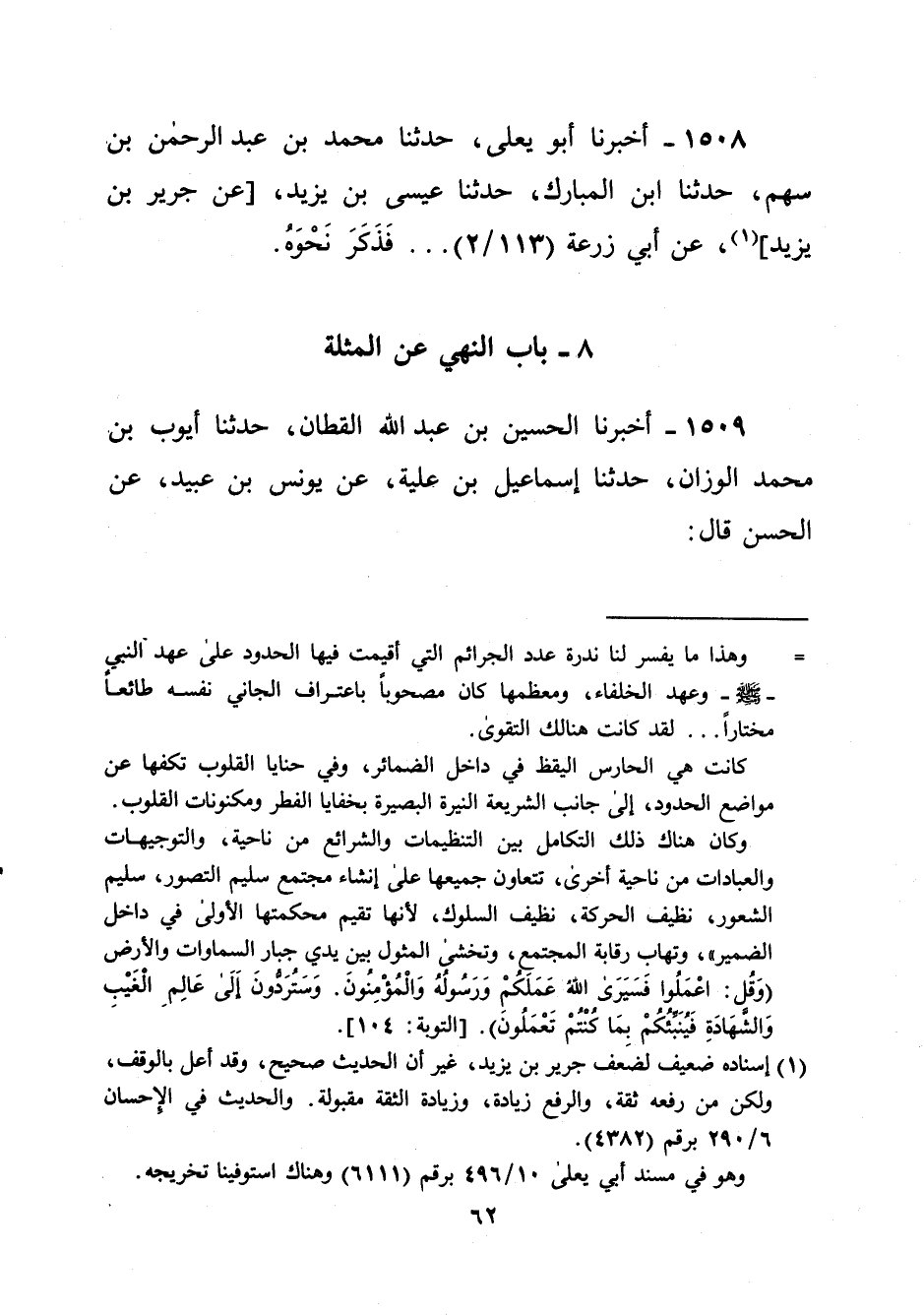 1508 - أخبرنا أبو يعلى، حدثنا محمد بن عبد الرحمن بن سهم، حدثنا ابن المبارك، حدثنا عيسى بن يزيد، [عن جرير بن يزيد] (¬1)، عن أبي زرعة (113/ 2) ... فَذَكَرَ نَحْوَهُ.