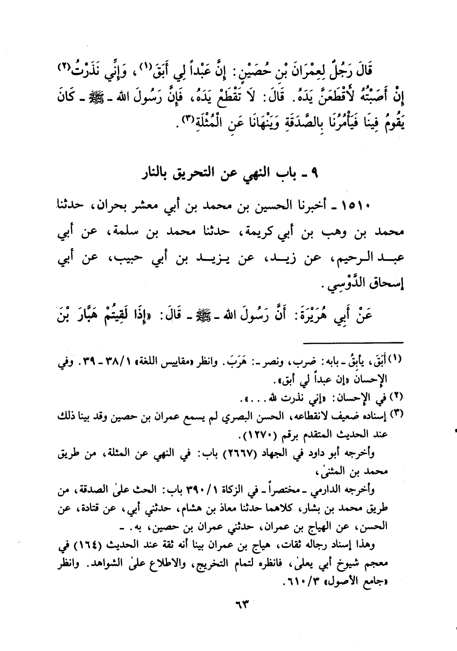 (¬3) إسناده ضعيف لانقطاعه، الحسن البصري لم يسمع عمران بن حصين وقد بينا ذلك