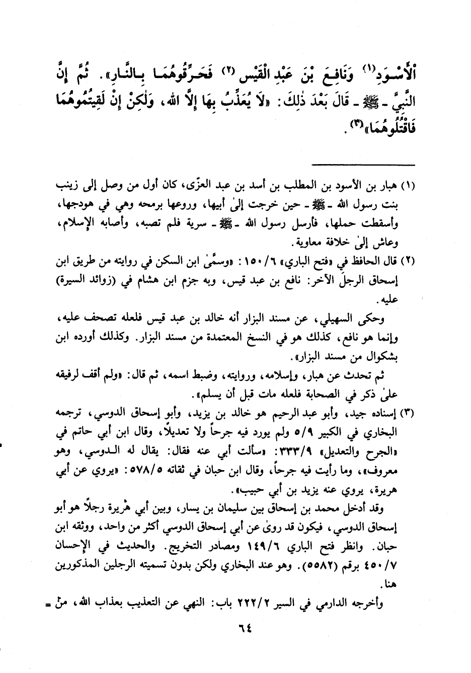 (¬1) هبار بن الأسود بن المطلب بن أسد بن عبد العزى، كان أول من وصل إلى زينب بنت رسول الله -صلى الله عليه وسلم- حين خرجت إلى أبيها، وروعها برمحه وهي في هودجها، وأسقطت حملها، فأرسل رسول الله -صلى الله عليه وسلم- سرية فلم تصبه، وأصابه الإسلام، وعاش إلى خلافة معاوية.