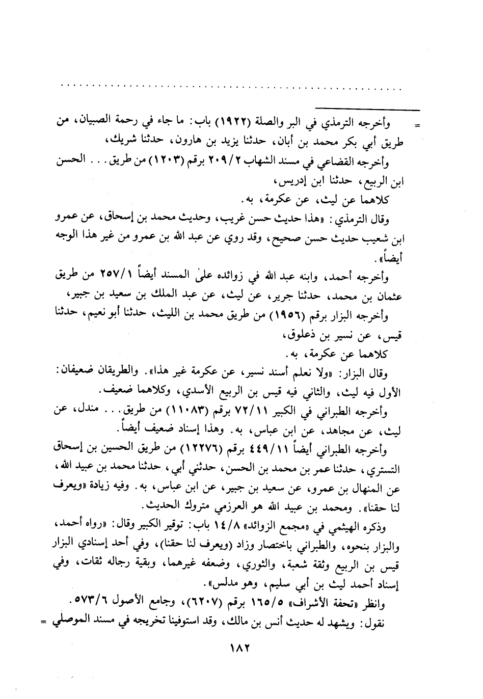 = وأخرجه الترمذي في البر والصلة (1922) باب: ما جاء في رحمة الصبيان، من طريق أبي بكر محمد بن أبان، حدثنا يزيد بن هارون، حدثنا شريك، وأخرجه القضاعي في مسند الشهاب 2/ 209 برقم (1203) من طريق ... الحسن ابن الربيع، حدثنا ابن إدريس، كلاهما عن ليث، عن عكرمة، به.