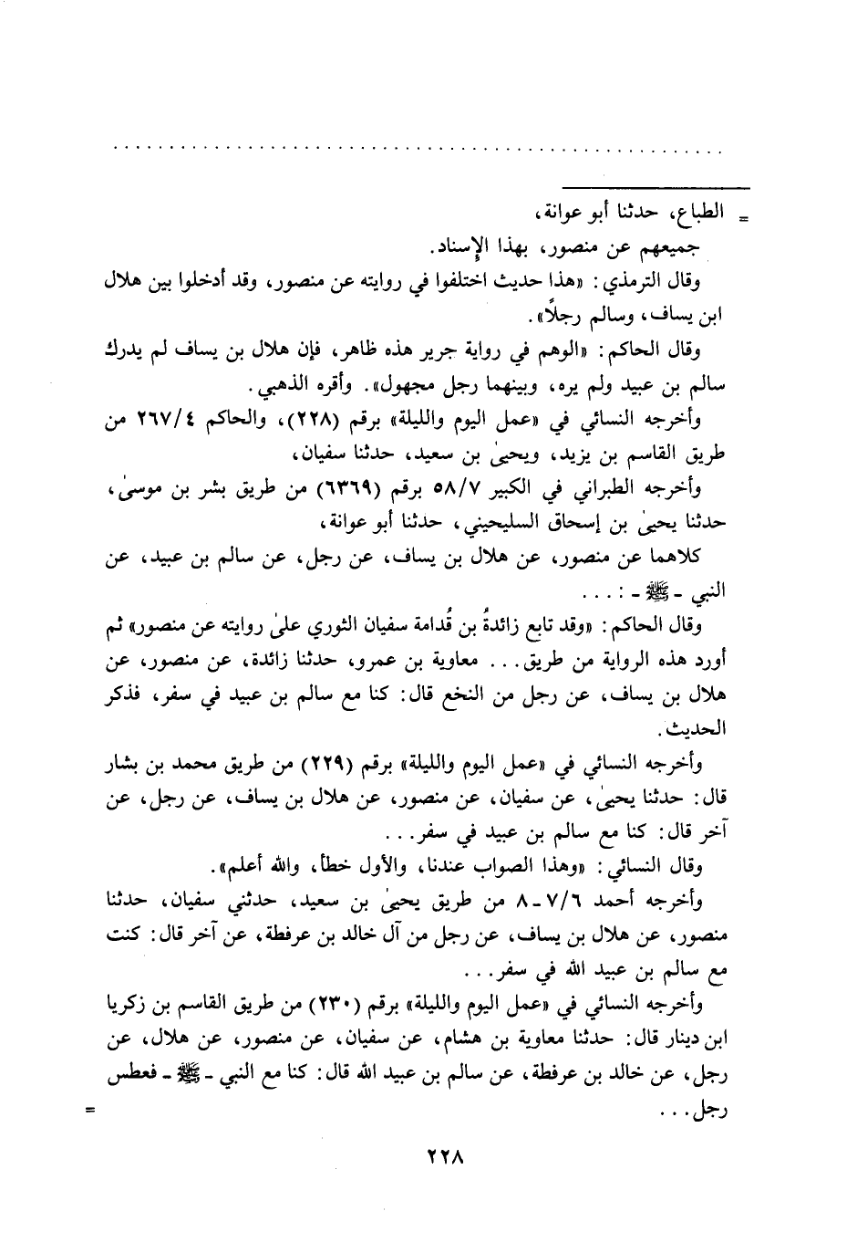 وقال الحاكم: "الوهم في رواية جرير هذه ظاهر، فإن هلال بن يساف لم يدرك سالم بن عبيد ولم يره، وبينهما رجل مجهول". وأقره الذهبي.