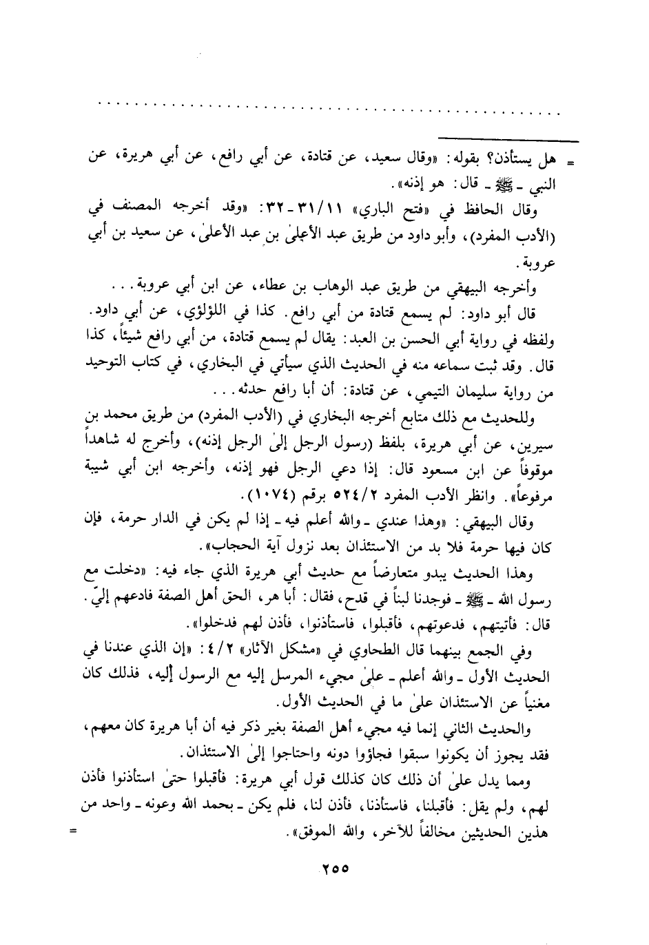 ومما يدل على أن ذلك كان كذلك قول أبي هريرة: فأقبلوا حتى استاذنوا فأذن لهم، ولم يقل: فأقبلنا، فاستأذنا، فأذن لنا، فلم يكن- بحمد الله وعونه- واحد من هذين الحديثين مخالفاً للآخر، والله الموفق". =