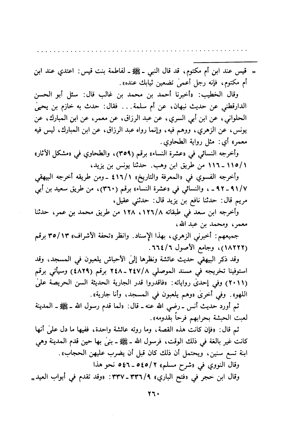 وقال ابن حجر في" فتح الباري" 9/ 336 - 337: "وقد تقدم في أبواب العيد =