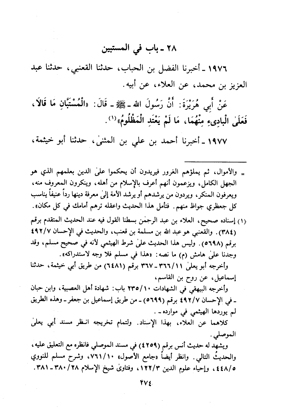 1976 - أخبرنا الفضل بن الحباب، حدثنا القعنبي، حدثنا عبد العزيز بن محمد، عن العلاء، عن أبيه.