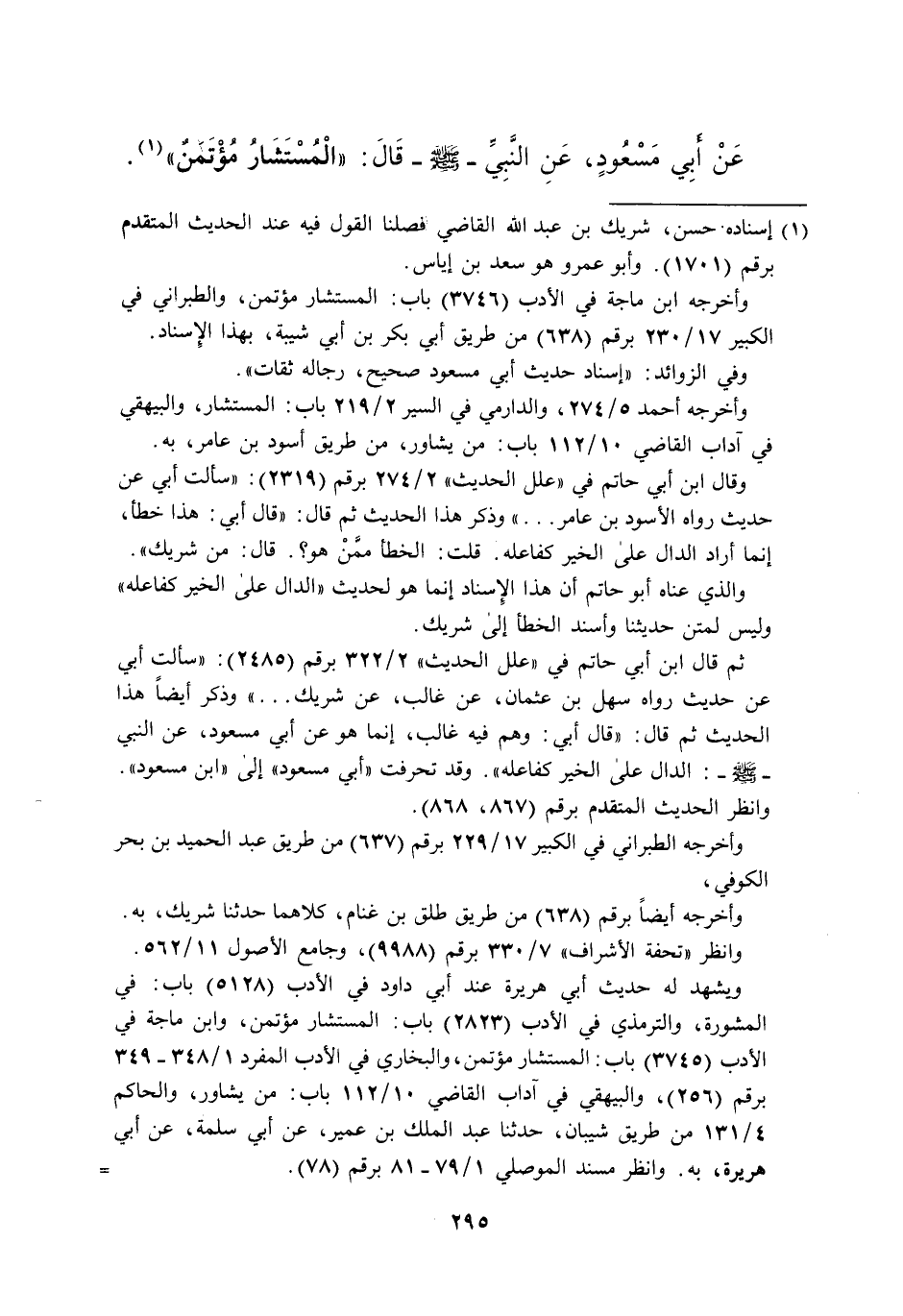 وأخرجه أحمد 10/ 112، والدارمي في السير 2/ 219 باب: المستشار، والبيهقي في آداب القاضي 10/ 112 باب: من يشاور، من طريق أسود بن عامر، به.