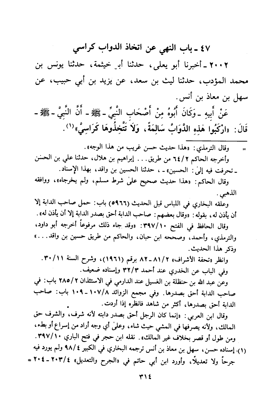 47 - باب النهي عن اتخاذ الدواب كراسي