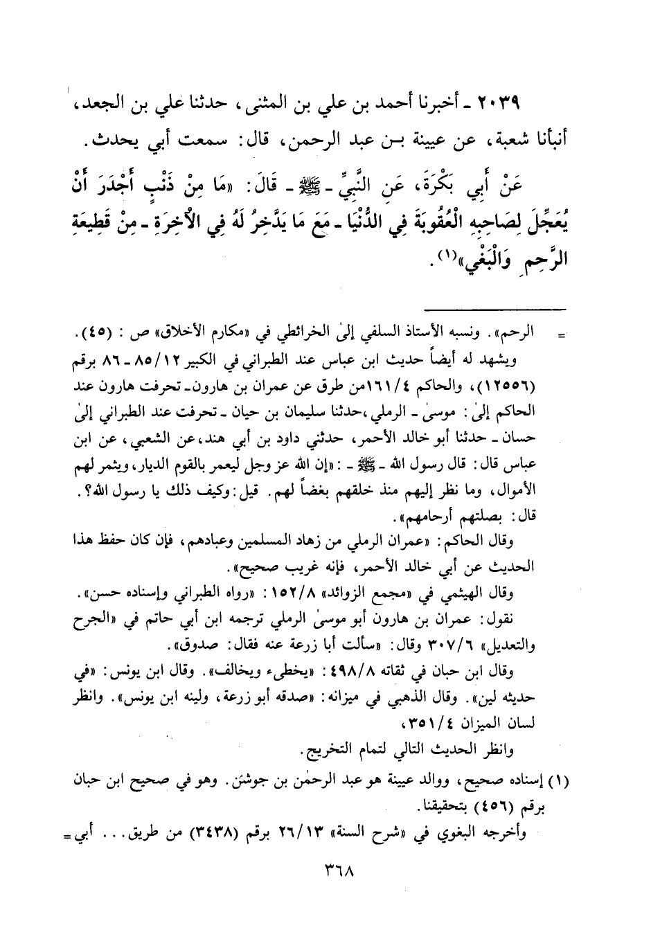 = الرحم". ونسبه الأستاذ السلفي إلى الخرائطي في "مكارم الأخلاق" ص: (45).