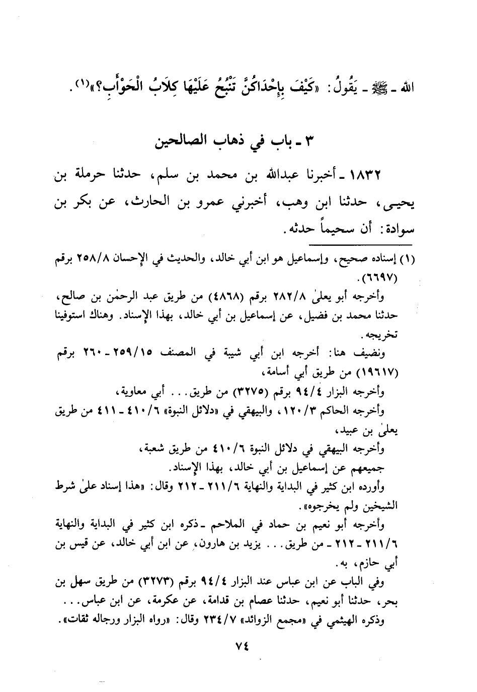 (¬1) إسناده صحيح، وإسماعيل هو ابن أبي خالد، والحديث في الإحسان 8/ 258 برقم (6697).