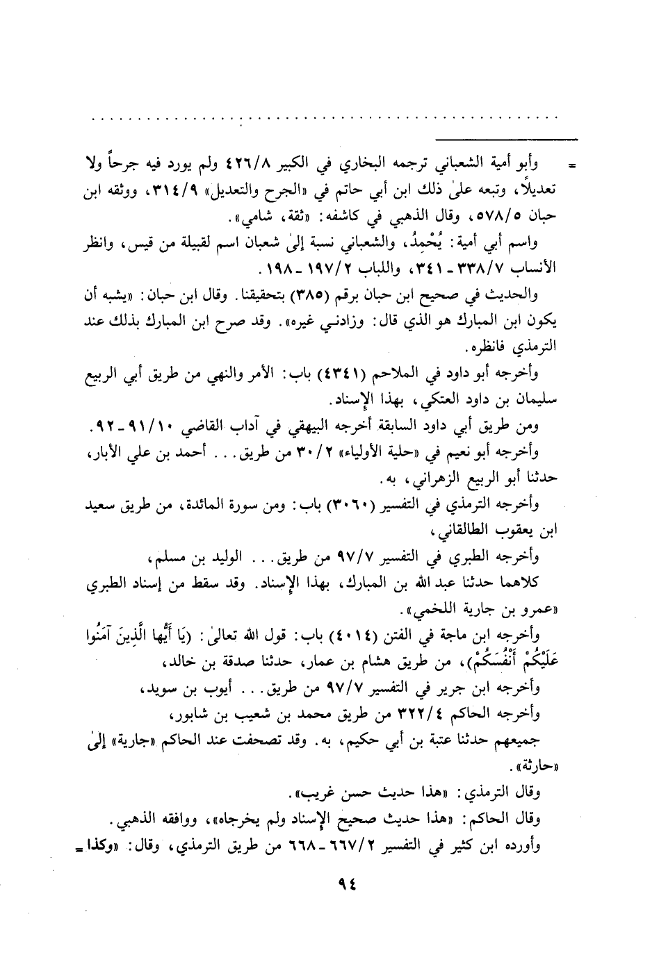 = وأبو أمية الشعباني ترجمه البخاري في الكبير 8/ 426 ولم يورد فيه جرحاً ولا تعديلاً، وتبعه على ذلك ابن أبي حاتم في "الجرح والتعديل" 9/ 314، ووثقه ابن حبان 5/ 578، وقال الذهبي في كاشفه: "ثقة، شامي".