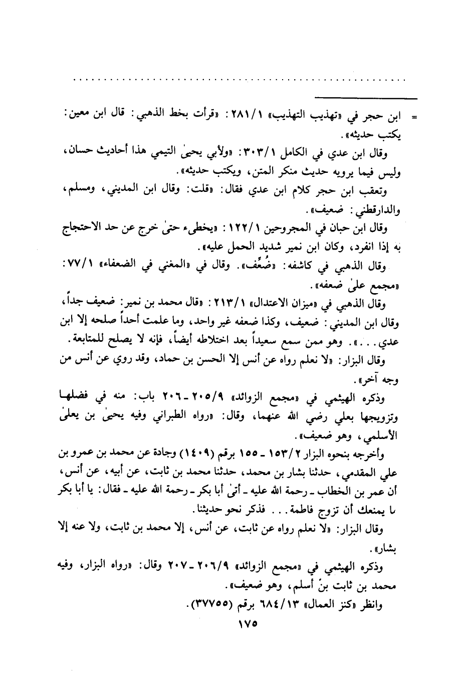 وتعقب ابن حجر كلام ابن عدي فقال: "قلت: وقال ابن المديني، ومسلم، والدارقطني: ضعيف".