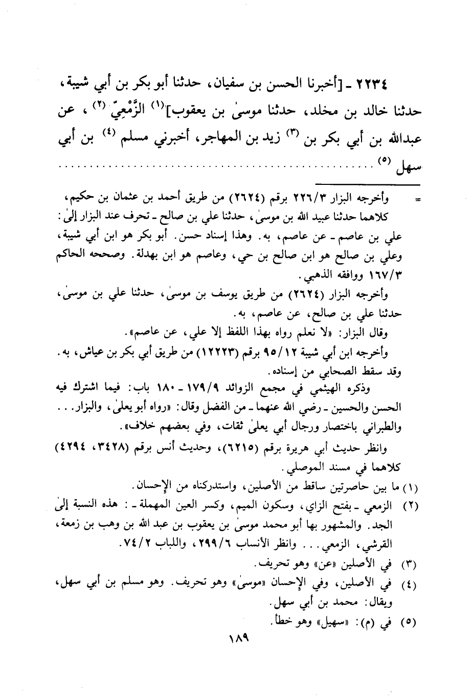 2234 - [أخبرنا الحسن بن سفيان، حدثنا أبو بكر بن أبي شيبة، حدثنا خالد بن مخلد، حدثنا موسى بن يعقوب] (¬1) الزَّمْعِيّ (¬2)، عن عبد الله بن أبي بكر بن (¬3) زيد بن المهاجر، أخبرني مسلم (¬4) بن أبي سهل (¬5). . . . . . . . . . . . . . . . . . . . . . . ¬__________